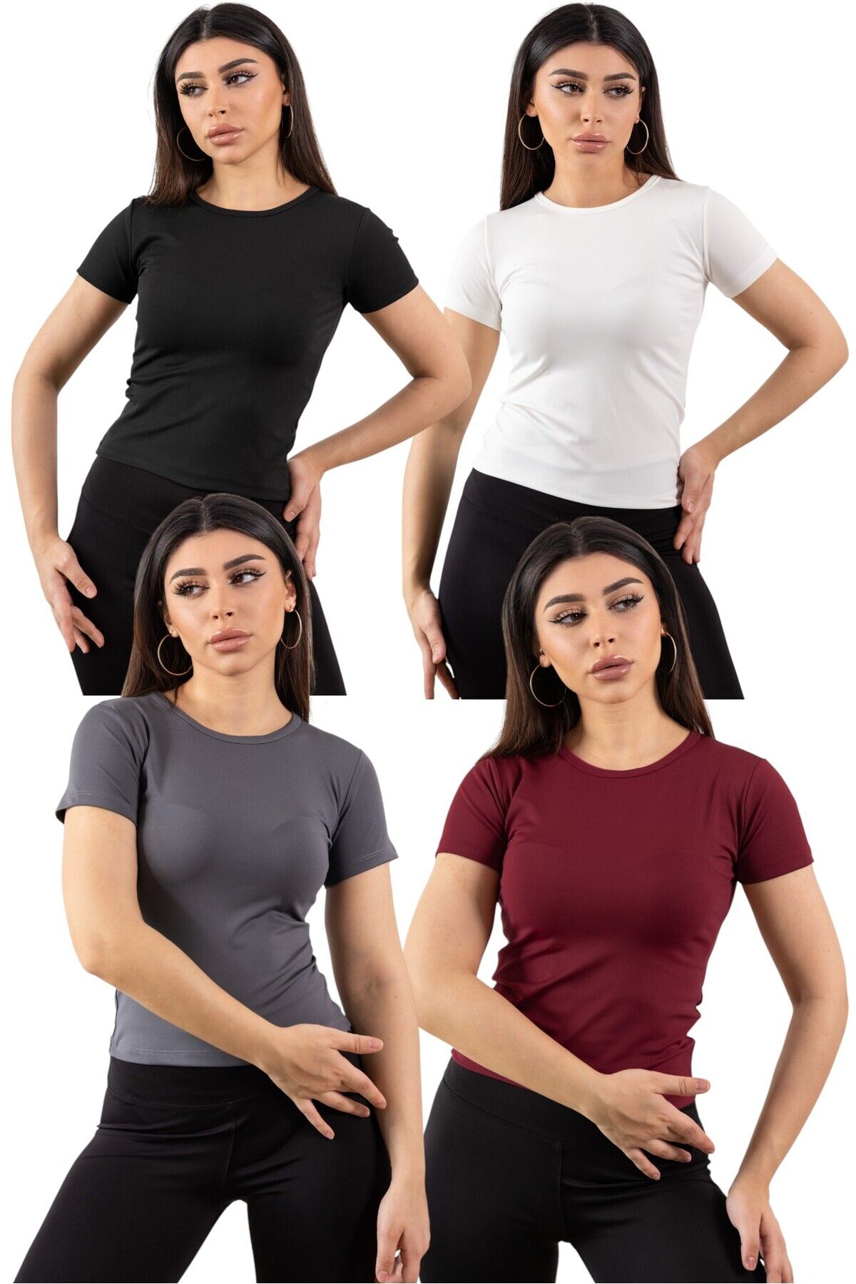 Bisiklet Yaka 4 Lü Basic Full Likra Body Bordo-Gri-Siyah-Beyaz - L
