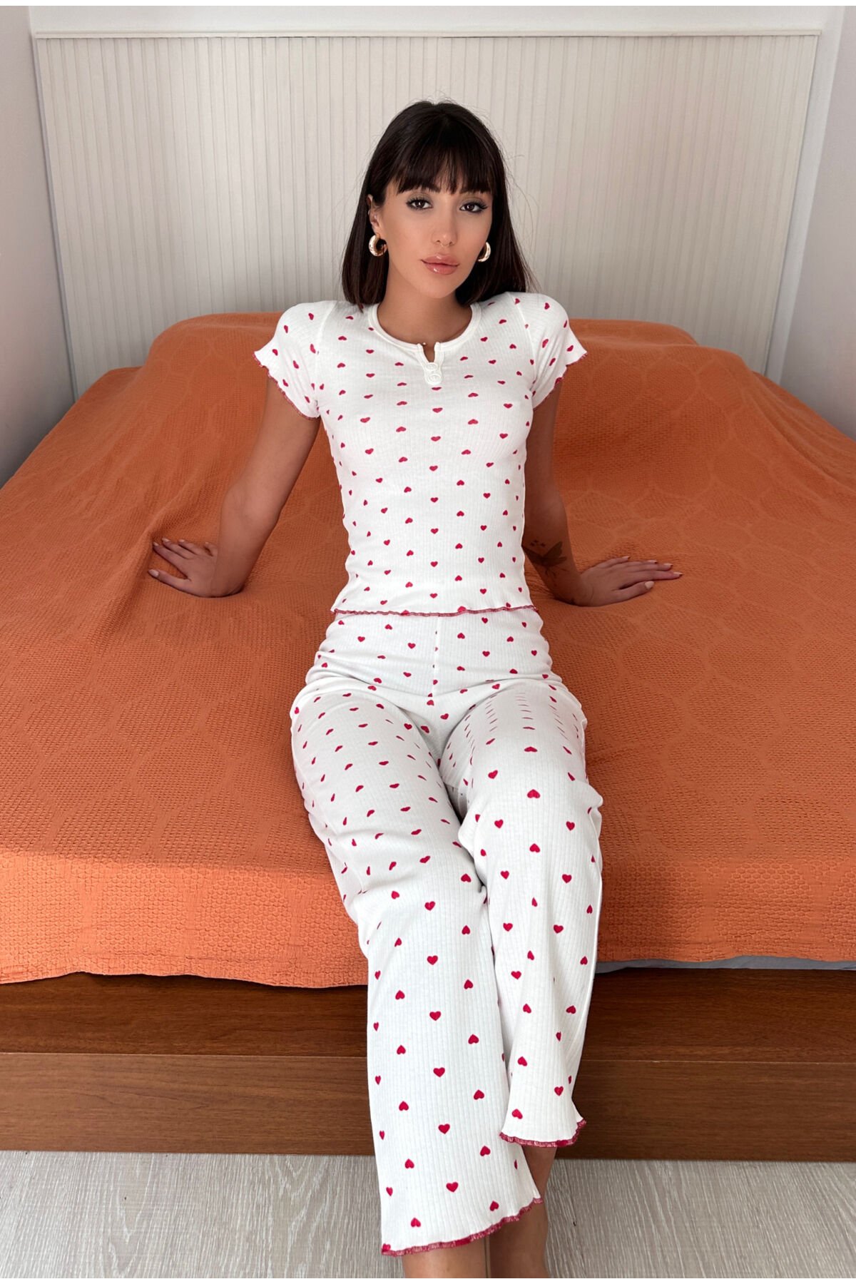 - %100 pamuk kumaştan üretilmiş olup, cildinize nefes aldıran yapısıyla konforlu bir uyku deneyimi sunar.; - Desenli tasarımı ile günlük kullanımda şıklığı ve rahatlığı bir arada yaşamanızı sağlar.; - İki parçadan oluşan set; t-shirt ve jogger pantolon içerir, böylece evdeki hareket özgürlüğünüzü kısıtlamaz.; - Düğmeli detayları sayesinde kolayca giyilip çıkarılabilir ve pratik kullanım imkanı tanır.; - Baskılı deseniyle göz alıcı bir görünüm kazandırırken, basic koleksiyonun sadeliğini korur.; - Uzun paça boyu ile bacaklarınızı sıcak tutarken, yıkamalı özelliği sayesinde uzun süreli kullanım vaat eder.; - Her mevsim tercih edebileceğiniz bu pijama takımı, tüm sezonlarda konforunuzdan ödün vermez.; - Regular kalıp ve normal bel kesimiyle vücut hatlarınıza uyum sağlayarak rahat bir oturuş sunar.; - İnterlok dokuma tipi sayesinde dayanıklılığı arttırılmıştır ve yumuşak dokusuyla teninizde hoş hisler bırakır.; - Homewear ortamına uygun olarak tasarlanmıştır; evde geçirilen zamanları daha keyifli hale getirmek için idealdir.; - Hem yetişkin hem de genç kullanıcılar için uygundur; herkes tarafından rahatlıkla tercih edilebilir.; - Kısa kol ve kısa boy tasarımının sunduğu serbest hareket alanı ile ev içindeki aktivitelerinizde maksimum konfor sağlar.; - İnterlok dokuma tipinin sunduğu esneklikle gün boyu rahat etmenizi garanti ederken aynı zamanda dayanıklılık açısından da üst düzey gösterir.- %100 pamuk kumaştan üretilmiş olup, cildinize nefes aldıran yapısıyla konforlu bir uyku deneyimi sunar.; - Desenli tasarımı ile günlük kullanımda şıklığı ve rahatlığı bir arada yaşamanızı sağlar.; - İki parçadan oluşan set; t-shirt ve jogger pantolon içerir, böylece evdeki hareket özgürlüğünüzü kısıtlamaz.; - Düğmeli detayları sayesinde kolayca giyilip çıkarılabilir ve pratik kullanım imkanı tanır.; - Baskılı deseniyle göz alıcı bir görünüm kazandırırken, basic koleksiyonun sadeliğini korur.; - Uzun paça boyu ile bacaklarınızı sıcak tutarken, yıkamalı özelliği sayesinde uzun süreli kullanım vaat eder.; - Her mevsim tercih edebileceğiniz bu pijama takımı, tüm sezonlarda konforunuzdan ödün vermez.; - Regular kalıp ve normal bel kesimiyle vücut hatlarınıza uyum sağlayarak rahat bir oturuş sunar.; - İnterlok dokuma tipi sayesinde dayanıklılığı arttırılmıştır ve yumuşak dokusuyla teninizde hoş hisler bırakır.; - Homewear ortamına uygun olarak tasarlanmıştır; evde geçirilen zamanları daha keyifli hale getirmek için idealdir.; - Hem yetişkin hem de genç kullanıcılar için uygundur; herkes tarafından rahatlıkla tercih edilebilir.; - Kısa kol ve kısa boy tasarımının sunduğu serbest hareket alanı ile ev içindeki aktivitelerinizde maksimum konfor sağlar.; - İnterlok dokuma tipinin sunduğu esneklikle gün boyu rahat etmenizi garanti ederken aynı zamanda dayanıklılık açısından da üst düzey performans gösterir.