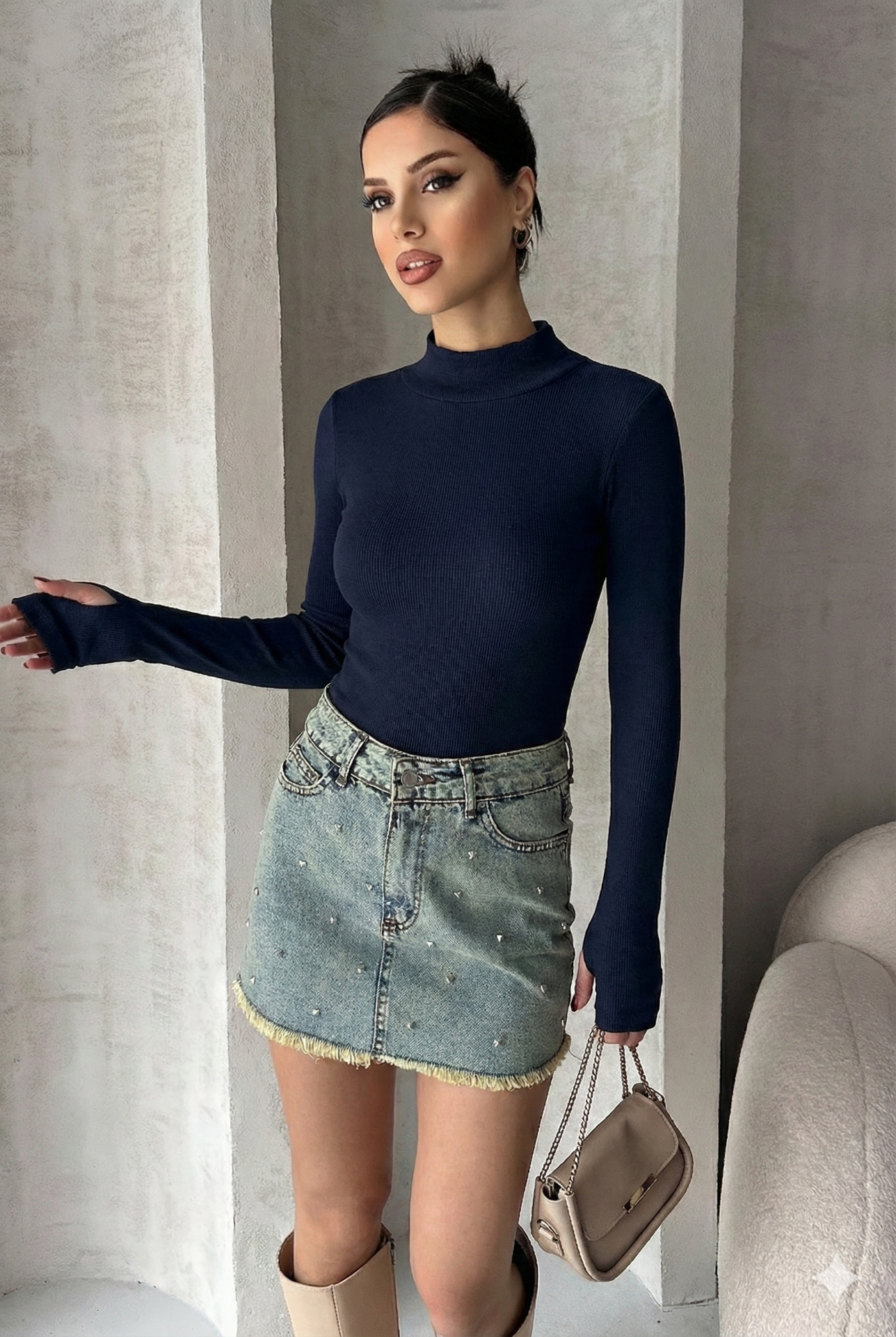- Yarım balıkçı yaka detayı ile modern ve zarif bir görünüm kazandırır.