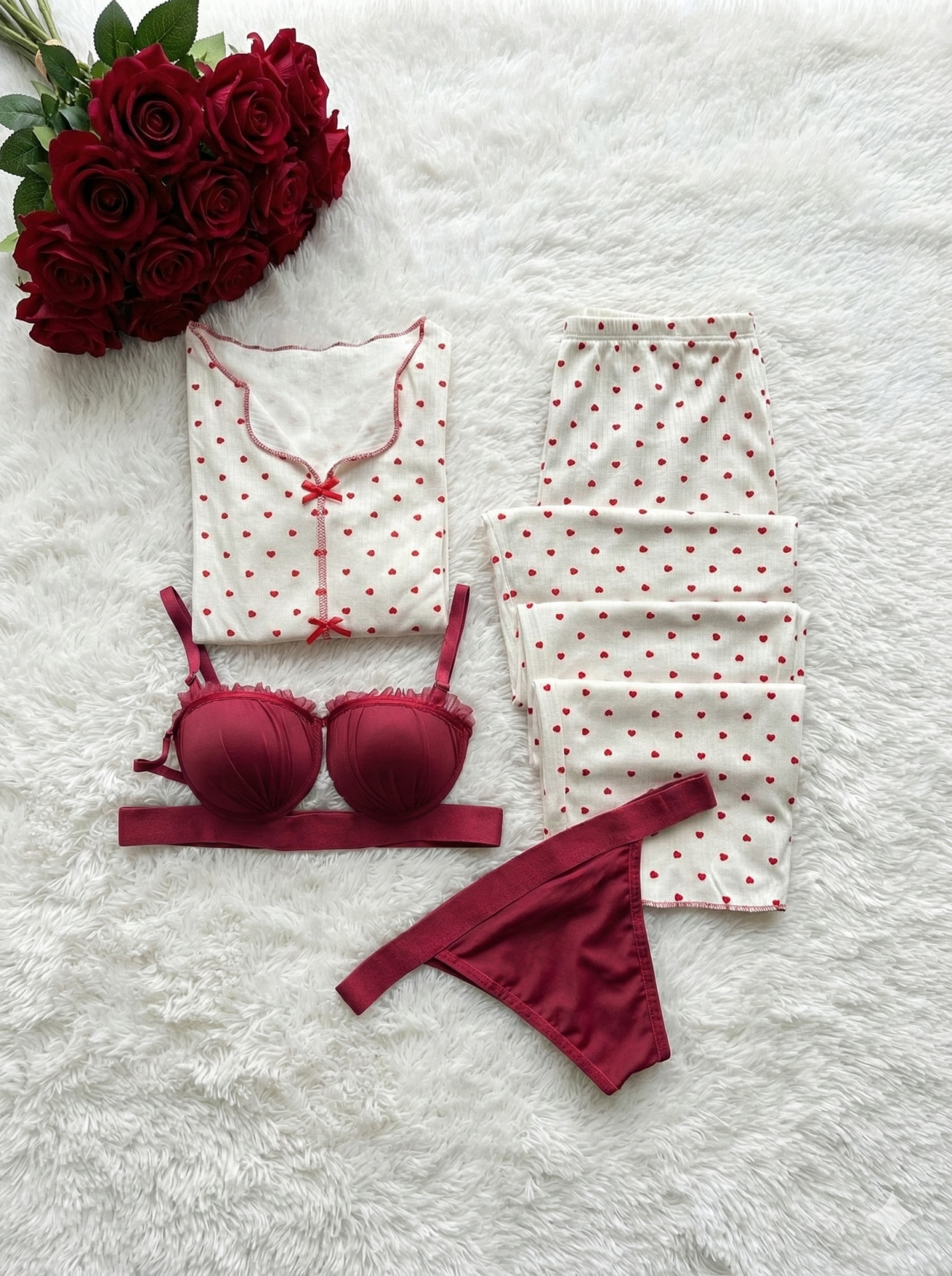 Kadın Uzun Kollu Penye Pijama ve İç Çamaşır Takımı XL - Kırmızı