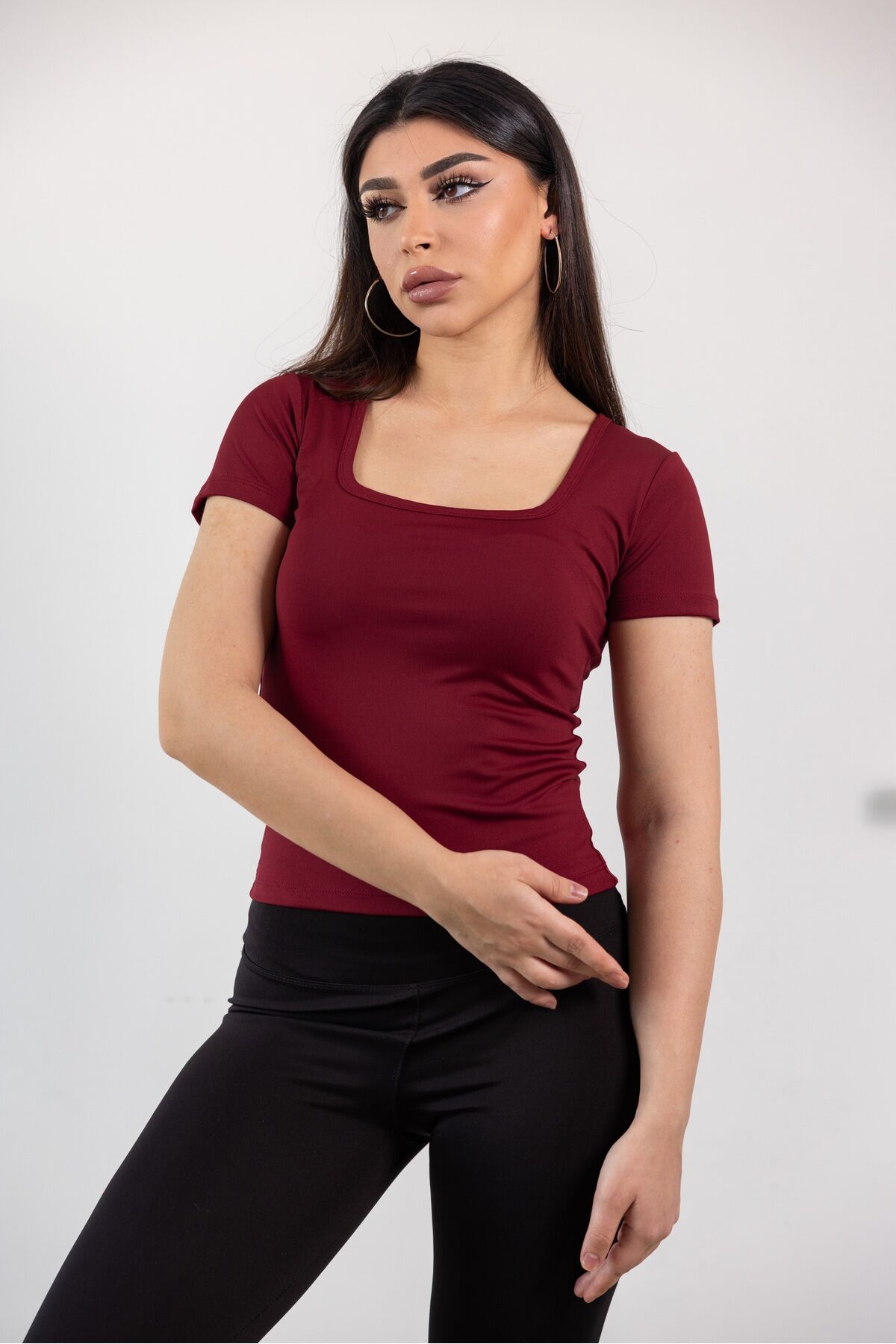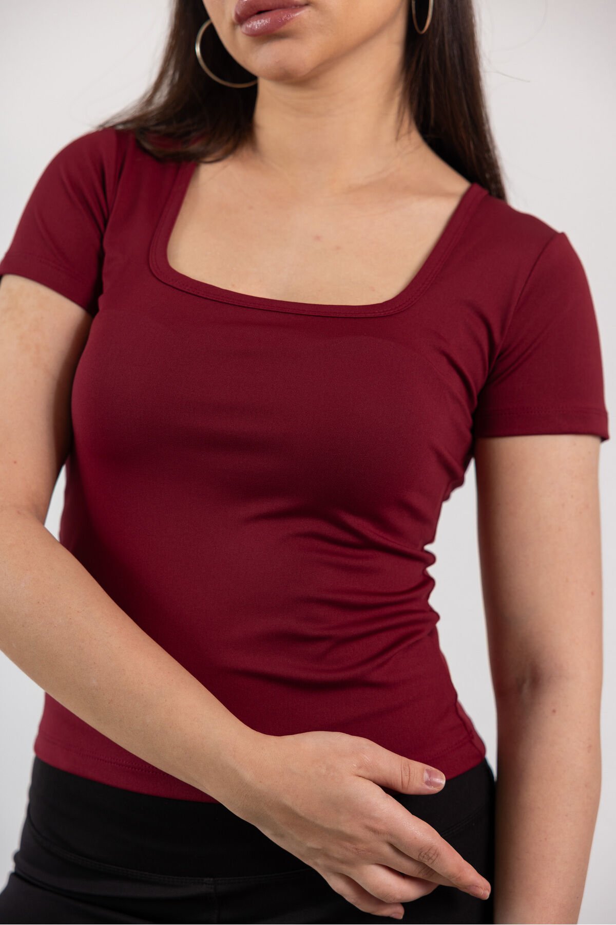 Kare Yaka Basic Full Likra Body Bordo - XL