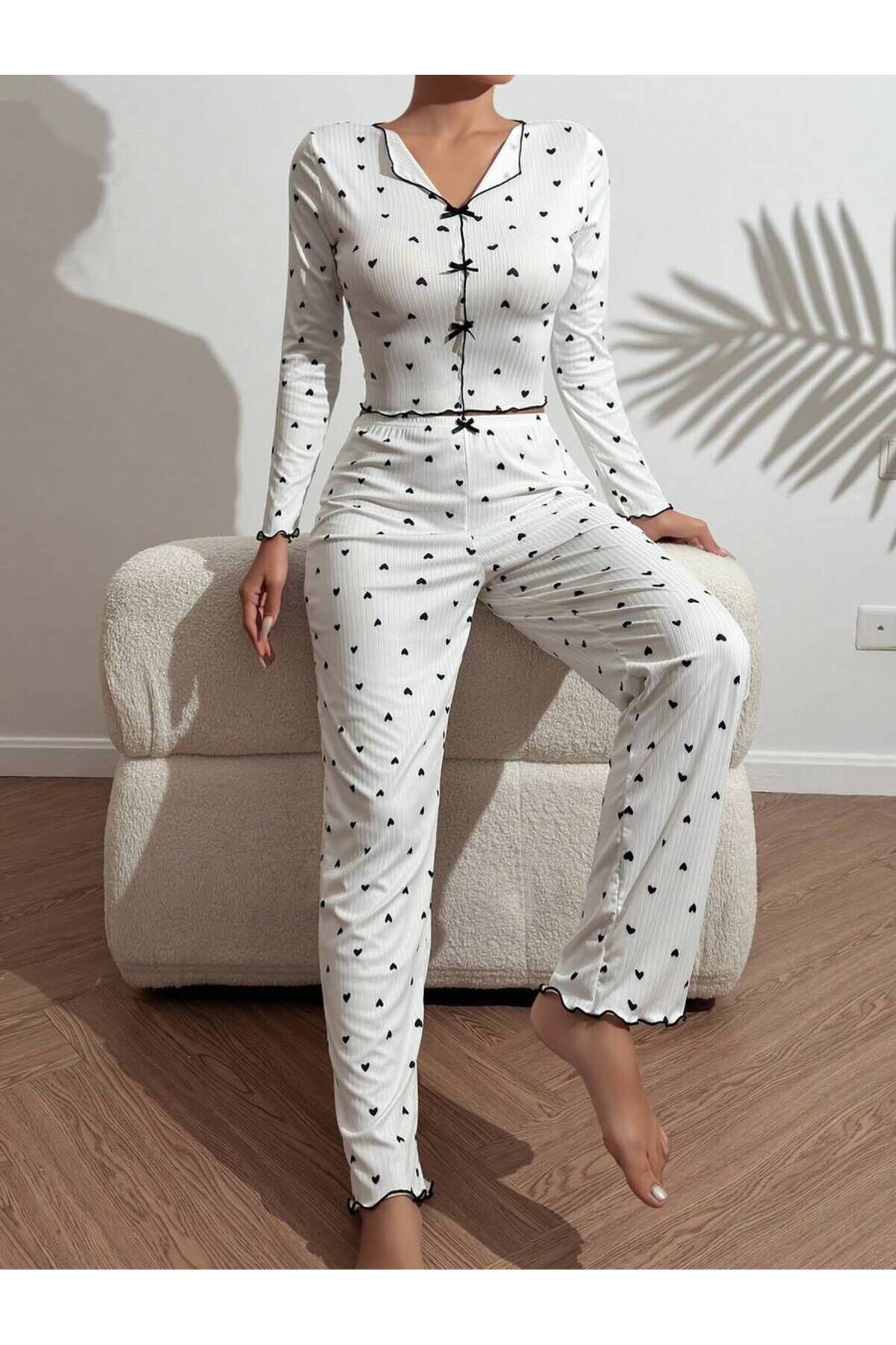 - Pamuklu kumaşı sayesinde gün boyu rahat bir kullanım sunar.; - V yaka tasarımı ile şık ve modern bir görünüm sağlar.; - Uzun kol ve bol paça kesimi, konforlu bir uyku deneyimi için idealdir.; - Lastikli bel yapısı sayesinde vücuda mükemmel uyum sağlar ve hareket özgürlüğü tanır.; - Örgü dokuma tipi, pijama takımına dayanıklılık ve yumuşaklık katar.; - Fiyonk detayları ile feminen dokunuşlar ekleyerek stilinizi tamamlar.; - 2 in 1 ürün tipi, pratik kullanım için hem üst hem de alt parçayı içerir.; - Tüm mevsimler için uygun olan bu takım, yılın her döneminde konforunuzdan ödün vermezsiniz.; - Homewear koleksiyonuna ait bu parça, evdeki rahatlığınızı artırır.; - Türkiye'de üretilen bu ürün, yerel ekonomiye destek olurken kaliteli bir deneyim sunar.; - Sürdürülebilirlik detayı ile çevre dostu bir seçim yapmış olursunuz.;- Pamuklu kumaşı sayesinde gün boyu rahat bir kullanım sunar.; - V yaka tasarımı ile şık ve modern bir görünüm sağlar.; - Uzun kol ve bol paça kesimi, konforlu bir uyku deneyimi için idealdir.; - Lastikli bel yapısı sayesinde vücuda mükemmel uyum sağlar ve hareket özgürlüğü tanır.; - Örgü dokuma tipi, pijama takımına dayanıklılık ve yumuşaklık katar.; - Fiyonk detayları ile feminen dokunuşlar ekleyerek stilinizi tamamlar.; - 2 in 1 ürün tipi, pratik kullanım için hem üst hem de alt parçayı içerir.; - Tüm mevsimler için uygun olan bu takım, yılın her döneminde konforunuzdan ödün vermezsiniz.; - Homewear koleksiyonuna ait bu parça, evdeki rahatlığınızı artırır.; - Türkiye'de üretilen bu ürün, yerel ekonomiye destek olurken kaliteli bir deneyim sunar.; - Sürdürülebilirlik detayı ile çevre dostu bir seçim yapmış olursunuz.;